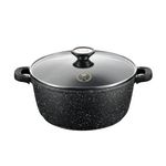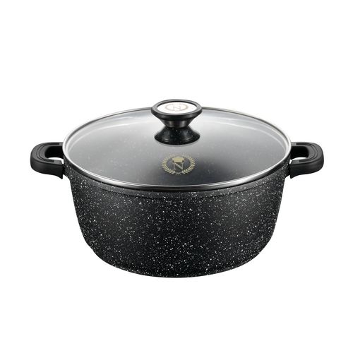 Faitout 24 cm avec couvercle en verre et maniques en silicone amovibles tous feux dont induction effet pierre