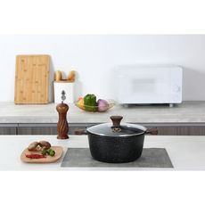 Faitout 24cm avec couvercle en fonte d'aluminium. Manche et poignée du couvercle effet bois. Compatible tous feux dont induction.