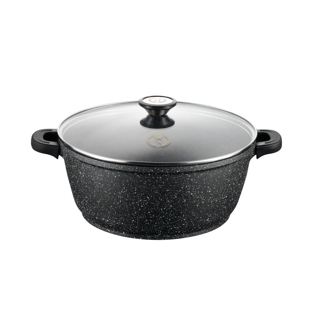 Faitout 32 cm avec couvercle en verre et maniques en silicone amovibles tous feux dont induction effet pierre