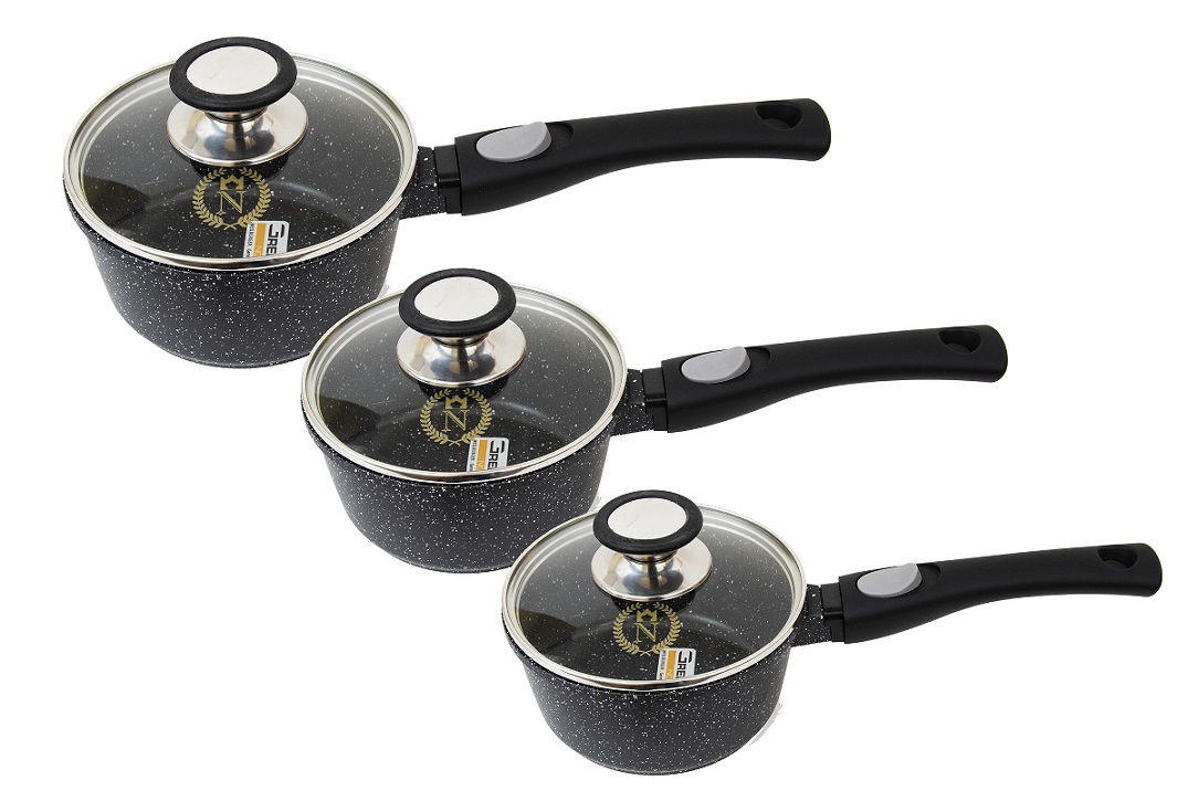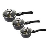 Set de 3 casseroles induction 9 pièces fonte d'aluminium amovible