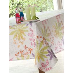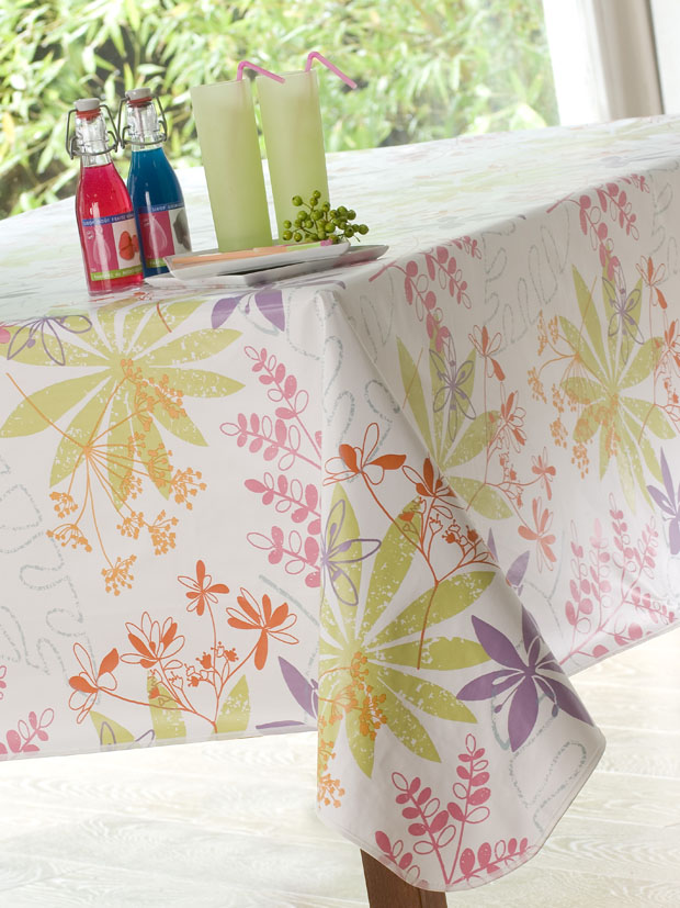 Ronde ou rectangulaire une nappe en toile cirée joliment imprimée d'un motif végétal aux couleurs fraîches. Idéale pour le quotidien, c'est la nappe facile à vivre par excellence (nettoyage d'un coup d'éponge), qui aime aussi les repas au jardin !