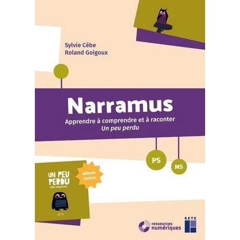 Grâce à Narramus - Un peu perdu, apprenez à vos élèves de PS-MS à comprendre et raconter une histoire, compétences essentielles pour une entrée réussie en lecture et en production d'écrits en élémentaire. La réussite des élèves en lecture dépend grandement de leurs compétences initiales en compréhension de textes entendus . De même, leurs performances en production d'écrits sont nettement meilleures lorsqu'ils ont appris au préalable à élaborer un discours décontextualisé . Narramus est une méthode conçue pour vous aider à mettre ces deux compétences au coeur des apprentissages de vos jeunes élèves ! Narramus - Un peu perdu est composé de trois éléments : 1- L'ALBUM Un peu perdu (version souple) Issu de la littérature de jeunesse, Un peu perdu est un album écrit et illustré par Chris Haughton, édité par Thierry Magnier. Bébé Chouette dort tranquillement à côté de sa maman dans un nid haut perché quand, soudain, il bascule hors du nid. Il se retrouve tout en bas, sur le sol, seul et perdu. Mais où est passée sa maman ? Heureusement, un écureuil plein d'entrain (mais pas très malin) se propose pour l'aider à la retrouver. Mais des mamans très grandes avec de grands yeux, il y en a plein dans la forêt... 2. LE GUIDE PEDAGOGIQUE Narramus - Un peu perdu Il est constitué de deux parties : - la présentation générale incluant une analyse des fondements théoriques, - le scénario regroupant les f iches de préparation des huit modules . Chaque module est présenté sur une double page : - A gauche , une description des différentes étapes à suivre , des tâches à réaliser, des consignes à donner avec des propositions d'énoncés pour l'enseignant et des réponses attendues des élèves. - A droite , des commentaires de différents types : conseil pratique, justification d'une option didactique inhabituelle, explicitation de la théorie sous-jacente à l'une des propositions des auteurs. Pour les rédiger, les auteurs ont recensé les questions posées par les enseignants qui ont testé les différents prototypes . Ils y relaient aussi les observations , les témoignages ou les conseils des enseignants-concepteurs . 3. LES RESSOURCES NUMERIQUES Narramus - Un peu perdu Elles contiennent tous les supports utiles pour la mise en oeuvre des modules (textes, illustrations, animations, version audio de l'histoire...) à utiliser avec un vidéoprojecteur . Grâce aux ressources numériques de Narramus, vous pouvez : - présenter le texte sans l'illustration ou l'inverse , - montrer toutes les illustrations d'un même épisode sur une même diapositive, - faire disparaitre des informations ou en ajouter, - faire écouter un épisode de l'histoire, - multiplier les feed-back pour étudier et mémoriser le vocabulaire... Il est possible d' exporter les fichiers audio au format mp3 sur votre ordinateur pour les mettre à disposition des élèves au coin bibliothèque (gravés sur un CD audio ou enregistrés sur une clé USB). En suivant la démarche Narramus - Un peu perdu, vos élèves apprendront à : - mémoriser le vocabulaire, - acquérir de nouvelles tournures syntaxiques, - retenir les idées principales de l'histoire, - s'interroger sur les pensées des personnages, - comprendre l'implicite du récit ! Le scénario contient 8 modules , répartis sur 4 semaines . Les + de Narramus - une méthode de qualité , issue du travail de Sylvie Cèbe et Roland Goigoux , - un contenu pertinent , conçu en collaboration avec des enseignants , principalement en REP , - un projet motivant pour les enfants , qui sont acteurs de leurs apprentissages , - un dispositif dont l'efficacité a été évaluée auprès de 6000 élèves . Pour aller plus loin, nous vous conseillons vivement l'article suivant : Evaluation des premiers effets d'un enseignement fondé sur l'outil didactique Narramus à l'école maternelle , Isabelle Roux-Baron, Sylvie Cèbe et Roland Goigoux, paru dans la Revue française de pédagogie 2017/4 (n° 201), pages 83 à 104 (accès conditionnel). https : //www. cairn. info/revue-francaise-de-pedagogie-2017-4-page-83. html NOUVEAU : dorénavant, les ressources numériques vous sont proposées en téléchargement. Pour en profiter, il vous suffira de vous rendre sur le site Internet dédié, muni(e) de votre clé d'activation personnelle (toutes ces indications sont données dans votre ouvrage). Configurations requises PC : à partir de Windows 10 Mac : IOS 10. 5, 10. 6, 10. 7, 10. 8, 10. 9, 10. 10, 10. 11, 10. 12, 10. 13. , 10. 14, 10. 15 Linux : Ubuntu 16. 04 Acrobat Reader / Internet Explorer / Firefox / Chrome / Safari / Opera toutes versions / Flash Player 11 . Rejoignez le groupe de discussion Narramus une autre façon de raconter des histoires : https : //www. facebook. com/groups/1922841568028552/ .