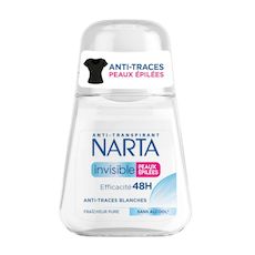 L'anti-transpirant Narta Invisible Peaux Epilées vous assure une efficacité anti-traces pour se débarrasser des traces blanches sur la peau comme sur les vêtements. Sa formule sans alcool respecte votre peau et le mécanisme naturel de transpiration. Une protection 48h contre les traces sur vos vêtements !