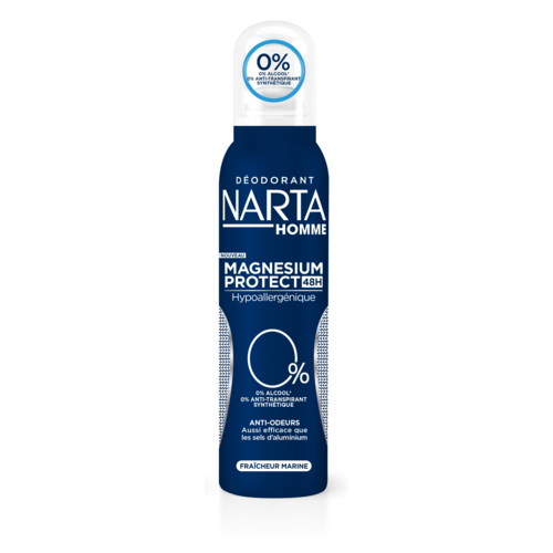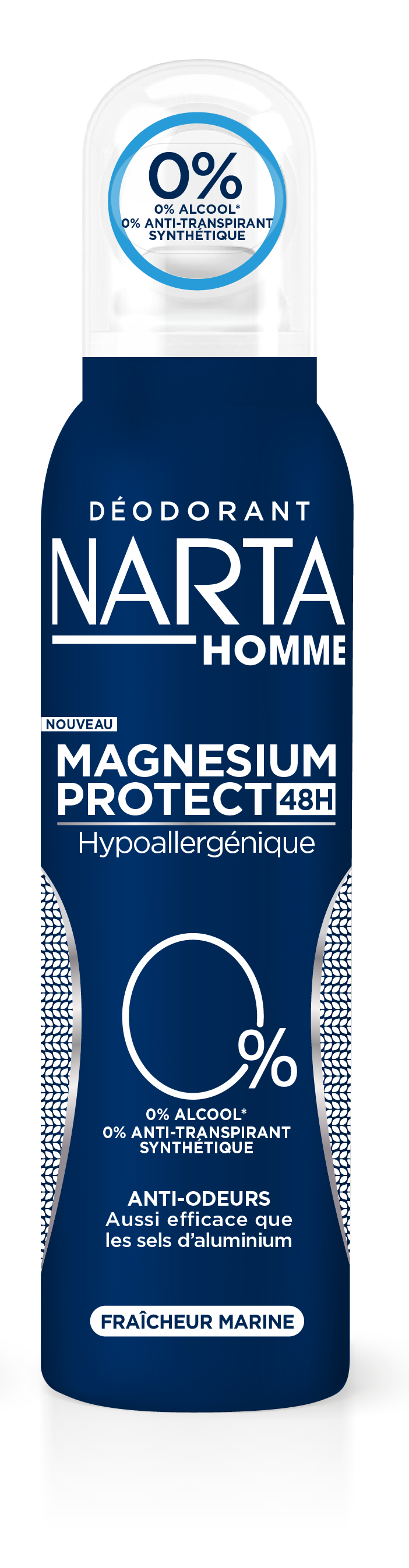 Formule sans anti transpirant synthétiqueau Magnésium Protecteur, aussi efficace que les sels d'aluminium contre les odeurs. Action anti odeur.Efficacité 48H.