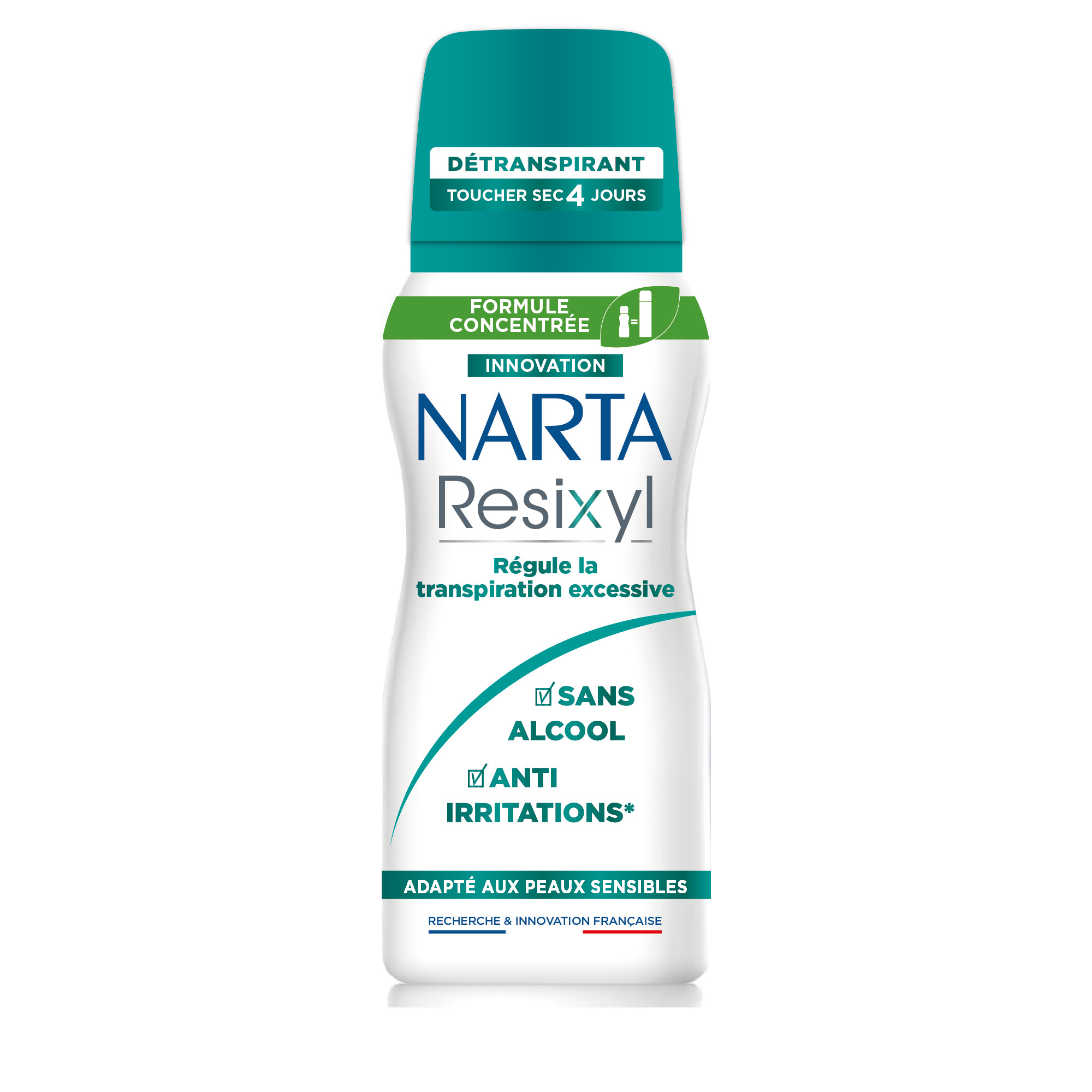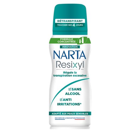 Détranspirant 4 jours toucher sec. Régule la transpiration excessive grâce au complexe minéral Resyx™. 0% alcool*, anti-irritations** et adapté aux peaux sensibles. * Alcool éthylique / ** Liées au rasage