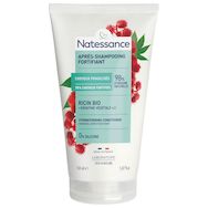 "La gamme Fortifiante de Natessance® renforce les cheveux fragilisés et abîmés. Cet après-shampooing allie l'huile de Ricin bio, reconnue pour réparer et protéger les cheveux, et une concentration doublée de kératine végétale¹, contribuant à les fortifier et les régénérer. Résultats prouvés : 78% cheveux fortifiés². Les cheveux sont plus épais, moins cassants, plus brillants et doux au toucher.