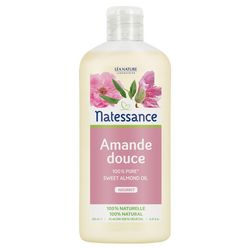 Découvrez les huiles végétales pures Natessance®. Cette huile d'Amande douce, de première pression à froid, certifiée biologique, est naturellement riche en oméga 6 et 9. Elle est reconnue pour ses propriétés nourrissantes. Huile pure 100% d'origine naturelle