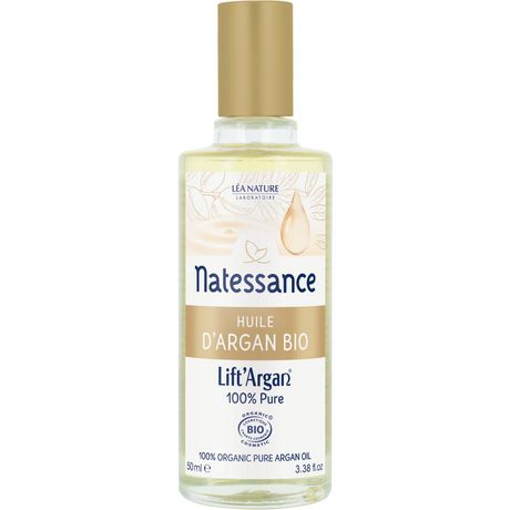 "L'huile d'Argan bio est l'alliée parfaite pour aider à lutter contre le vieillissement cutané tout en apportant hydratation¹ et confort à la peau. Sans conservateur, sans parfum. 1. Hydratation des couches supérieures de l'épiderme."