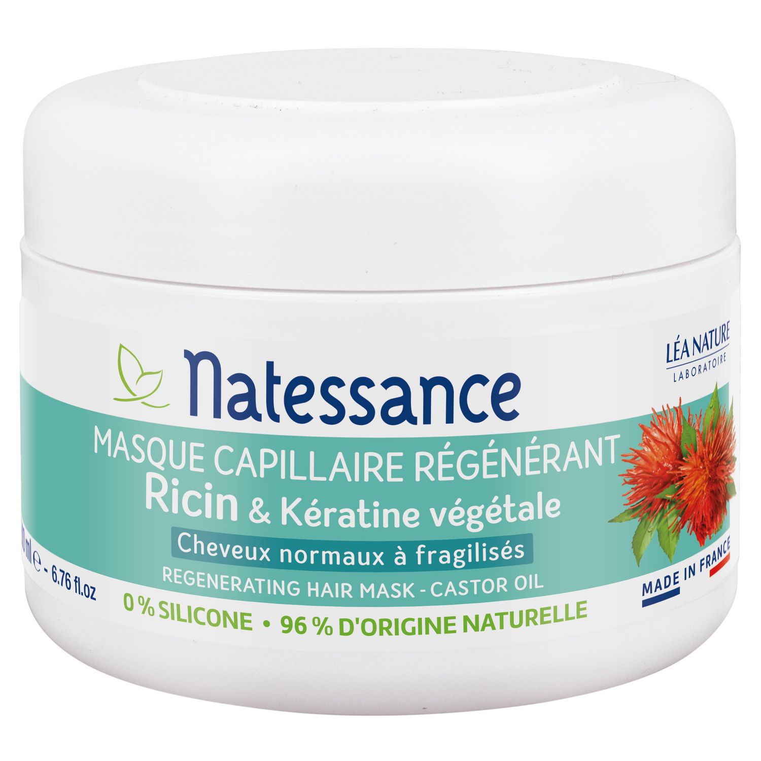 Masque capillaire régénérant Ricin & Kératine végétale Natesance Cheveux fragilisés Masque naturel Ricin Kératine Végétale huile de ricin 0% silicone fortifiant made in France
