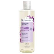 Shampooing apaisant Natessance Soulagement immédiat cuir chevelu sensible shampooing naturel brillance mauve postbiotiques d'origine naturelle confort irritations douceur rougeurs démangeaisons Made in France 0% silicone 0% sulfate Natessance