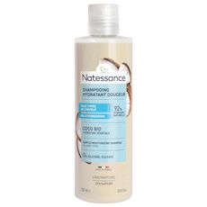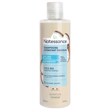 "La gamme Hydratante de Natessance® sublime tous les types de cheveux. Ce shampooing allie l'huile de Coco bio, reconnue pour hydrater et apporter souplesse aux cheveux, et la kératine végétale, contribuant à les fortifier et à les régénérer. Résultats prouvés : les cheveux sont hydratés pendant 48h, brillants et doux au toucher."
