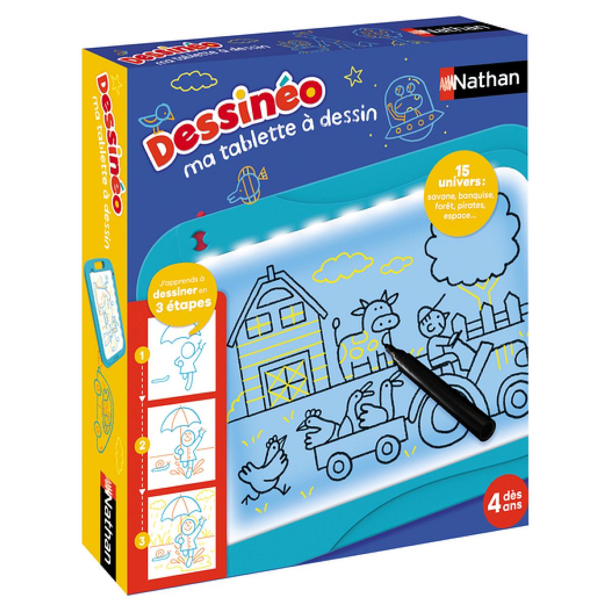 Un nouveau Dessinéo à amener partout ! Grâce aux pas à pas astucieux, l'enfant apprend à dessiner avec Dessinéo. Il choisit un modèle, le place sur sa tablette, pose une feuille de papier sur le pupitre lumineux et dessine pas à pas l'image choisie. Un jeu d'apprentissage de dessin ludique et éducatif !