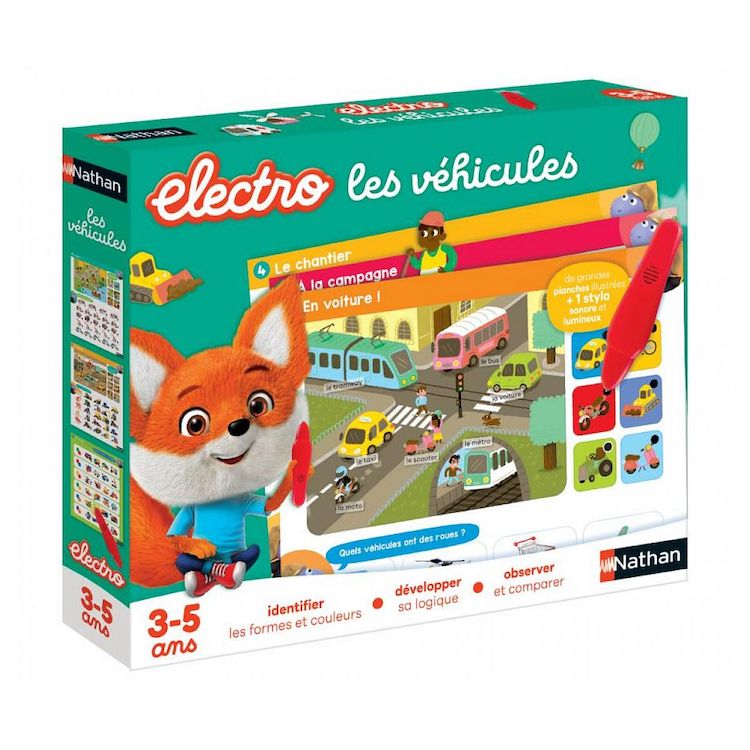 Un jeu électronique de questions-réponses pour faire ses premiers apprentissages. Observation, logique, couleurs, formes, chiffres? Pour chaque question, l'enfant pointe son stylo sur la bonne réponse. Si le stylo s'allume, bravo, la réponse est bonne !. Thèmes : dans la ville, les 2 roues, les loisirs, les véhicules d'urgence et utilitaires, les véhicules de chantier, le train, sur l'eau et sous l'eau, dans le ciel..