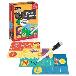 J'écris les lettres de Nathan est un premier jeu pour faire ses premiers pas vers l'écriture avec un apprentissage progressif. L'enfant intègre les gestes préparatoires à l'écriture avec les graphismes et écrit ses premières lettres sur les 13 planches effaçables et utilisables à l'infini. Au total, 6 jeux progressifs dans la boîte.