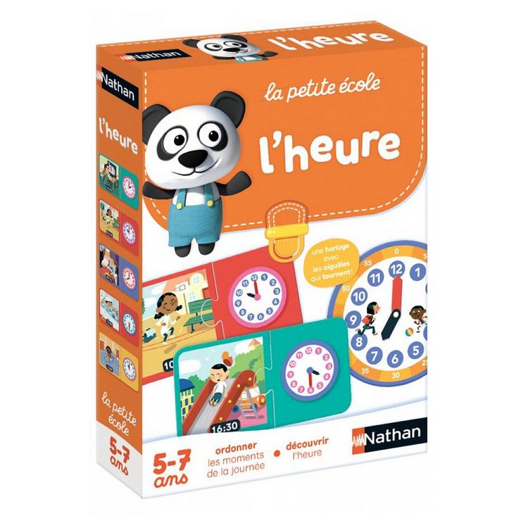 6 jeux progressifs pour apprendre à se situer dans le temps, en jouant seul ou à plusieurs. Des puzzles d'association aux couleurs très gaies et une horloge avec des aiguilles qui tournent. L'enfant associe les différents moments de la journée à l'heure correspondante. Puis, il s'amuse à mettre la g