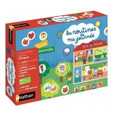 Un premier calendrier magnétique, idéal pour la maternelle. Chaque jour, l'enfant pose sur son tableau les magnets des routines et des activités. Il apprend à se repérer dans la semaine et à observer le temps qu'il fait. Et chaque soir, il place un magnet sur le thermomètre des émotions. Un moment p