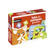 Un grand loto pour parcourir le monde avec les animaux à travers les 5 planches illustrées et 30 jetons.Chaque enfant choisit une ou plusieurs planches. Les images sont mélangées et empilées face cachée. Les enfants piochent à tour de rôle : le premier qui a complété sa planche a gagné !
