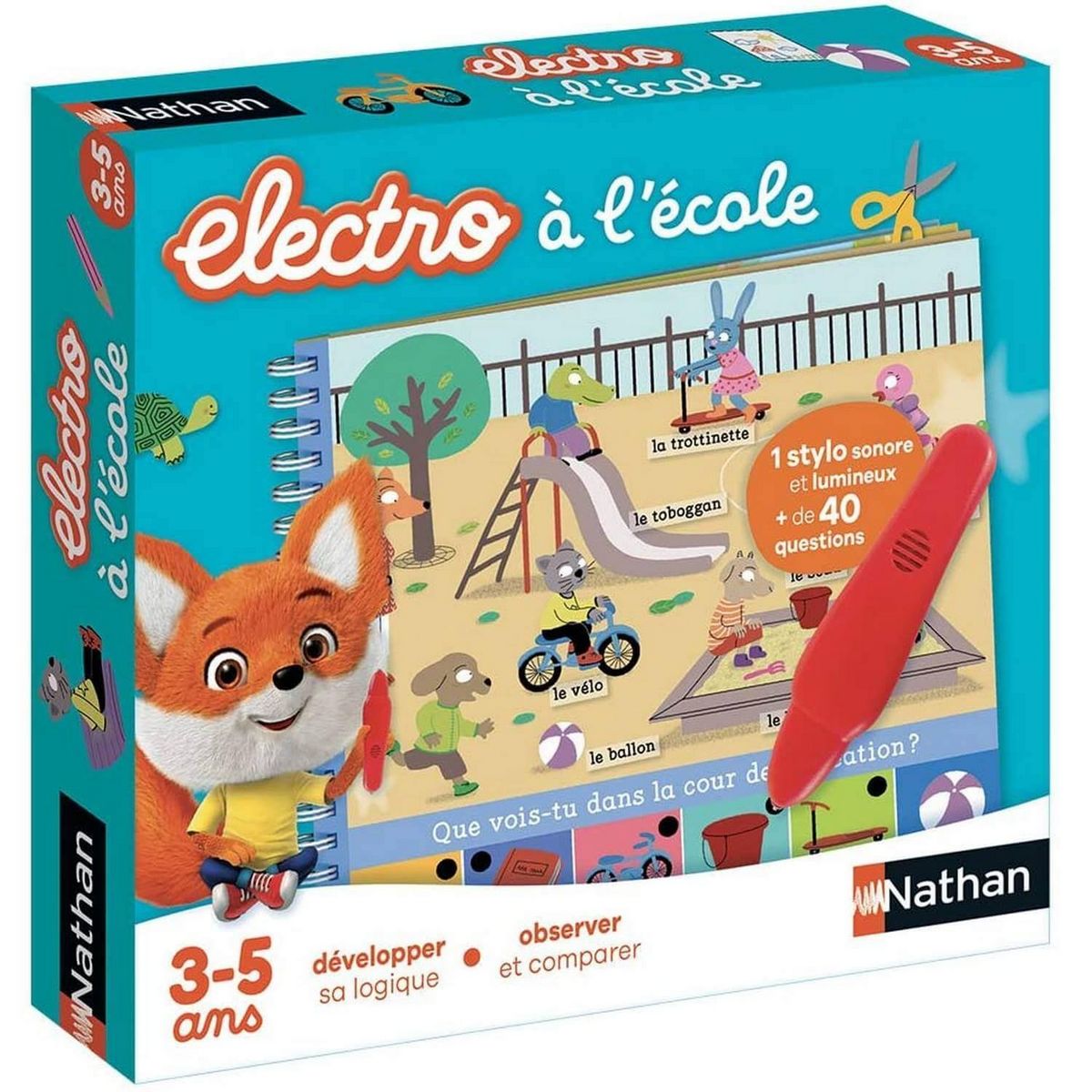 Jeu éducatif électronique de la marque Nathan à partir de 3 ans.Contenu : 1 carnet de 20 pages et 1 stylo sonore et lumineux. Age minimum : 3 ans