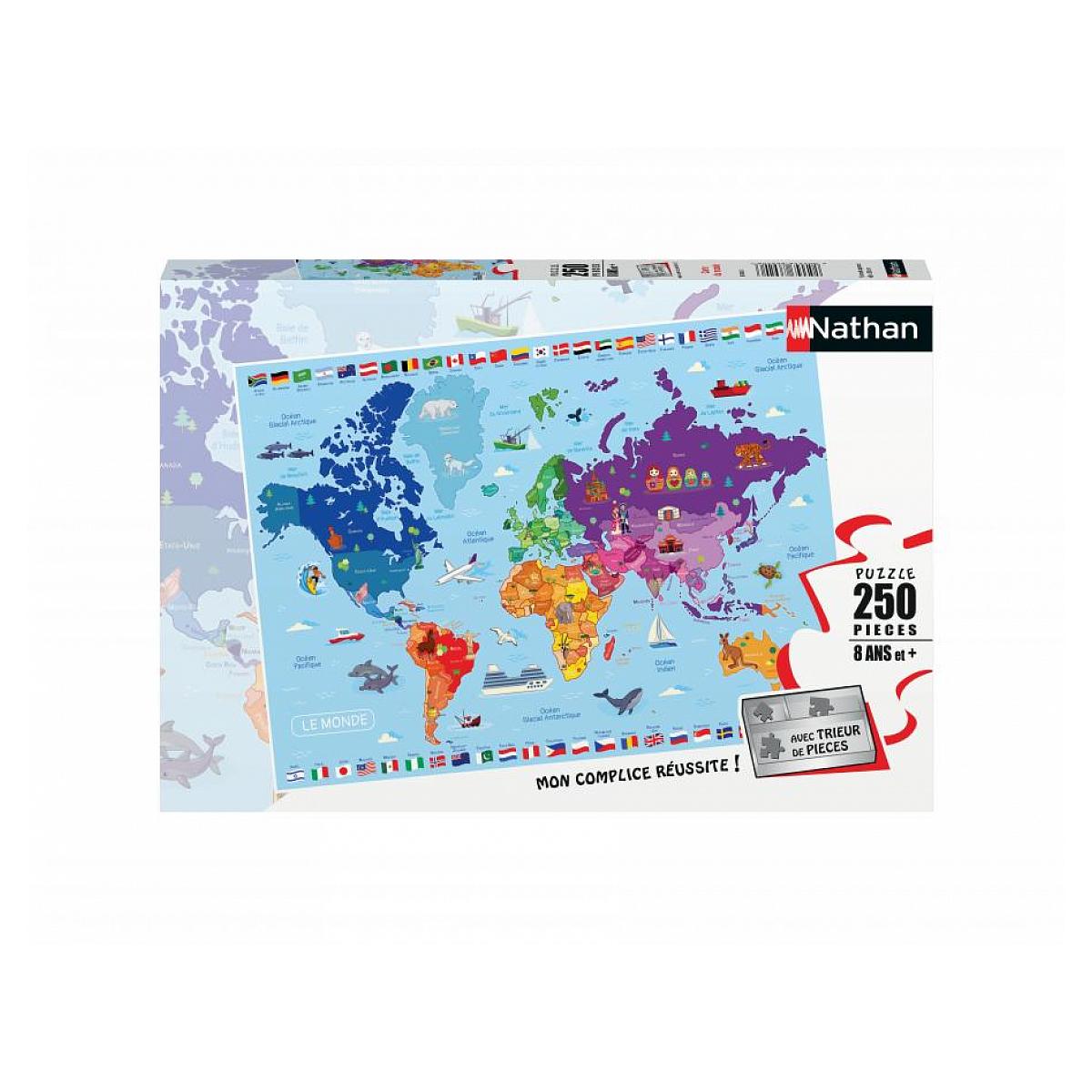Découvrez notre puzzle éducatif de 250 pièces représentant la carte du monde, idéal pour éveiller la curiosité des enfants. Ce jeu stimule la coordination visuelle et motrice tout en développant l'esprit logique des jeunes explorateurs. Conçu pour accompagner chaque étape de leur évolution, notre gamme de puzzles propose des images captivantes et un nombre de pièces adapté à chaque âge. Offrez à votre enfant une expérience d'apprentissage ludique et enrichissante avec les nouveaux puzzles Nathan, un excellent moyen de découvrir le monde tout en s'amusant.