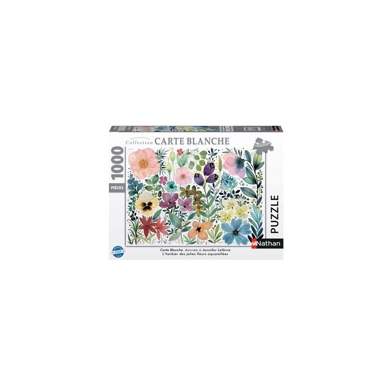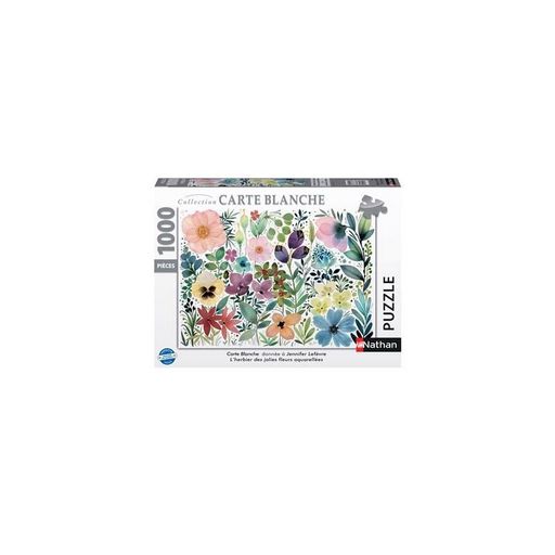 Puzzle Nathan L'herbier des jolies fleurs aquarellées Jennifer Lefèvre Collection Carte Blanche 1000 pièces