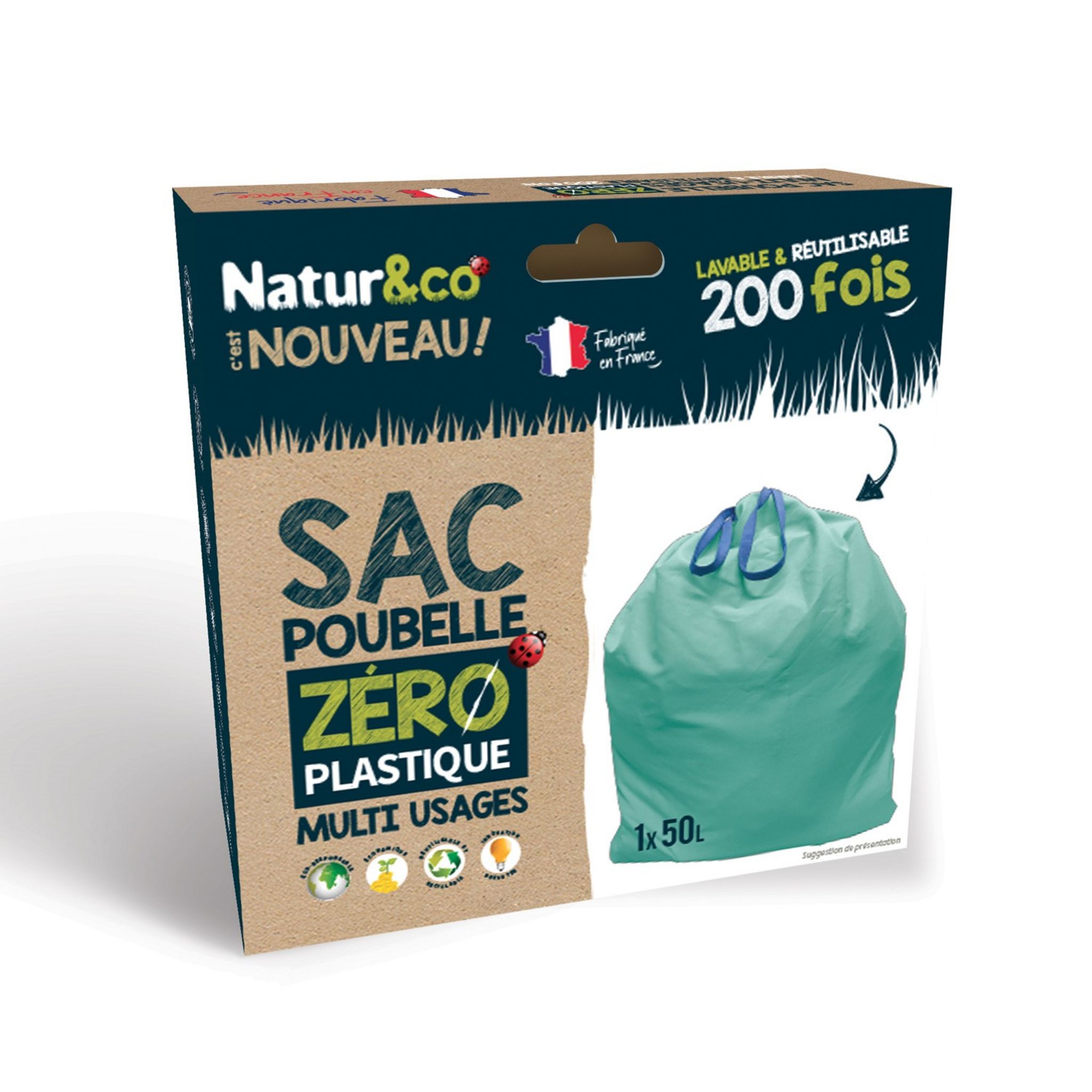 Le sac poubelle ZERO PLASTIQUE Natur&co multi usage permet de participer à la lutte contre le plastique