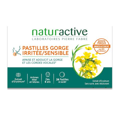 Les PASTILLES GORGE Naturactive adoucissent et apaisent immédiatement la gorge pour 86% des utilisateurs, grace à l'extrait d' Erysimum officinale reconnu pour ses vertus adoucissantes.A utiliser en cas de gorge ou cordes vocales irritées.