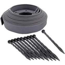 Bordure a gazon - NATURE - Gris - Rouleau - PE épaisseur 4 mm - H5 cm x 10 m - 10 clous torsadés noir - H20cm x 8 mm