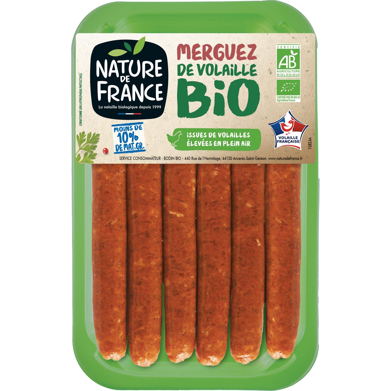 Ingrédients : Viande de poulet* (origine France) 95%, épices et plantes aromatiques*, conservateur : lactate de sodium, sel de mer, dextrose*, sucre de canne*, betterave*, jus concentré d'acérola déshydraté*, boyau naturel de mouton. Traces de BLE, LAIT et OEUF.(*) ingrédients issus de l'agriculture biologique.Conditionné sous atmosphère protectrice.