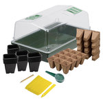 Pots de bouturage en polystyrène + Semoir - coupelle graduée de 1 à 6 + Etiquettes PVC + 1 crayon + Mini serre de culture - terrine rigide, couvercle ventilé + Pots biodégradables en fibres bois recyclées, carrés -