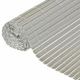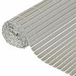 Cet ecran d'intimite est fabrique en PVC avec un revetement resistant aux UV et peut etre fixe contre une cloture existante. Les lattes semi-ovales sont maintenues ensemble avec du fil de nylon.