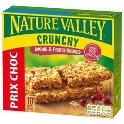 Laissez-vous tenter par le plaisir des barres de céréales Nature Valley™ Crunchy. Profitez de la gourmandise et du croquant de nos barres à l'avoine 100% complète et aux fruits rouges et retrouvez dans chaque sachet individuel, deux barres de céréales à emporter partout. Ces barres de céréales sont sans colorant, sans conservateur, sans arôme artificiel, sans lactose.
