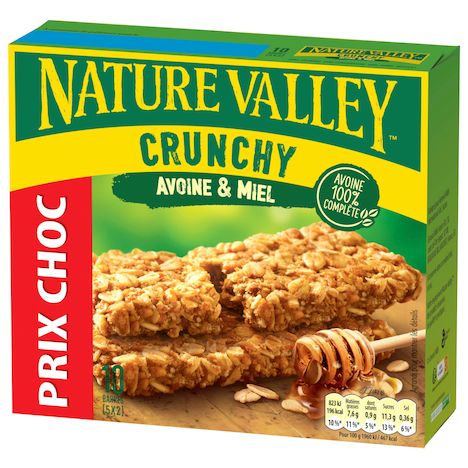 Laissez-vous tenter par le plaisir des barres de céréales Nature Valley™ Crunchy. Profitez de la gourmandise et du croquant de nos barres à l'avoine 100% complète et au miel et retrouvez dans chaque sachet individuel, deux barres de céréales à emporter partout. Ces barres de céréales sont sans colorant, sans conservateur, sans arôme artificiel, sans lactose.
