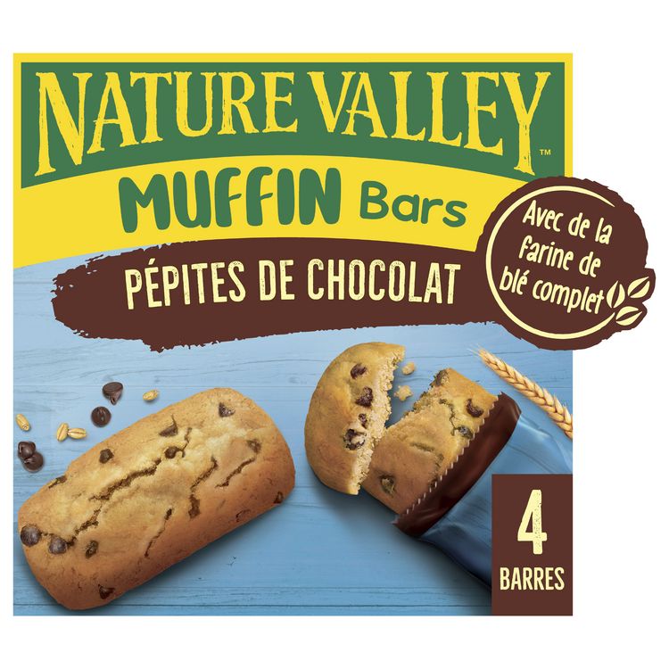 Laissez-vous tenter par le plaisir des barres Muffin Nature Valley™. Profitez de la texture moelleuse d'un muffin dans un format barre à la farine de blé complet et aux pépites de chocolat. Emportez vos barres muffin partout grâce à nos sachets individuels pratiques.