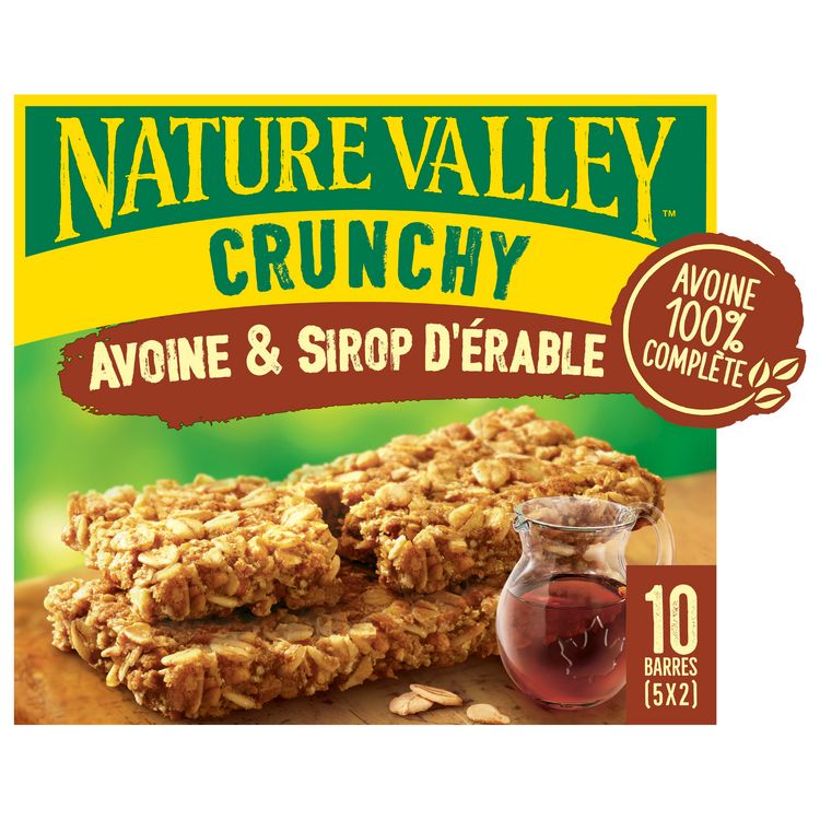 Laissez-vous tenter par le plaisir des barres de céréales Nature Valley™ Crunchy. Profitez de la gourmandise et du croquant de nos barres à l'avoine 100% complète et au sirop d'érable et retrouvez dans chaque sachet individuel, deux barres de céréales à emporter partout. Ces barres de céréales sont sans colorant, sans conservateur, sans arôme artificiel, sans lactose.