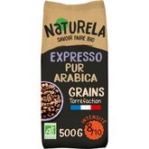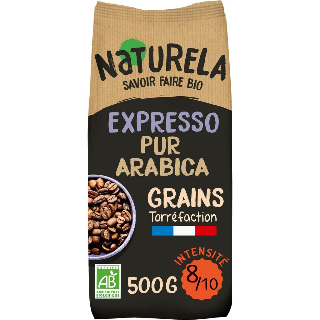 Découvrez le café en grains pur arabica expresso Naturela et laissez-vous emporter par sa tasse riche et intense. Bio et torréfié lentement en France, c'est le café corsé incontournable du petit déjeuner.