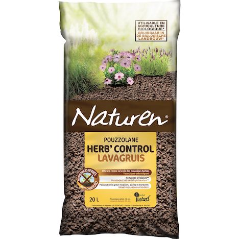 Naturen paillage herb'controlt pouzzolane 20L. Limite naturellement la pousse des mauvaises herbes. Idéal pour vos rocailles, allées et bordures,