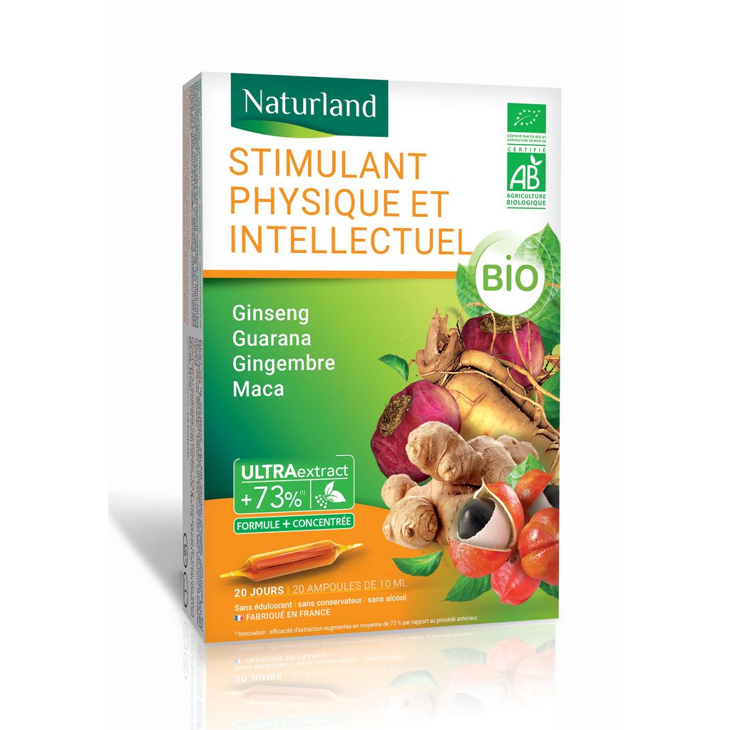 200 ML STIMULANT PHYSIQUE GINSENG/MACA/GUARANA/GINGEMBRE BIO 20MPX10ML NATURLAND