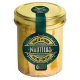Découvrez les tendres filets de thon Nautilus marinés dans une huile d’olive vierge de qualité. Avec un procédé de fabrication artisanal (filets et huile d’olive mis en bocal à la main) toute la générosité et le cœur de Nautilus se retrouvent dans ces bocaux de verre.