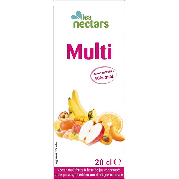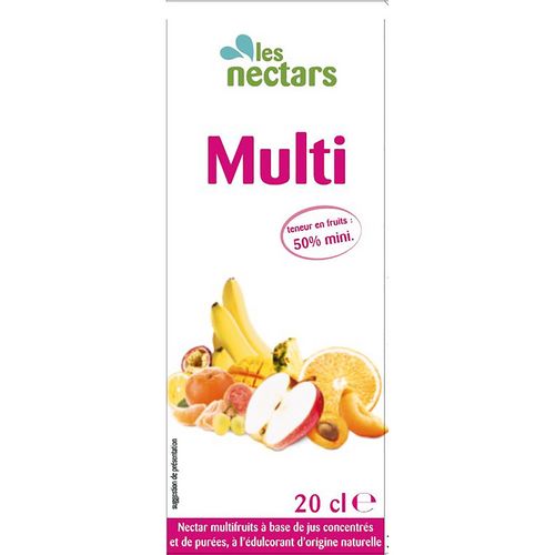 Nectar multifruits à base de jus concentrés et de purées, à l'édulcorant d'origine naturelle