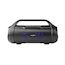 La Nedis Party Boombox est une enceinte portable Bluetooth offrant une puissance maximale de 120 watts. Conçue pour l'écoute en extérieur, elle propose une autonomie de jusqu'à 6 heures grâce à sa batterie de 3000 mAh. Ce modèle noir au design élégant est résistant à l'eau avec une protection IPX5.