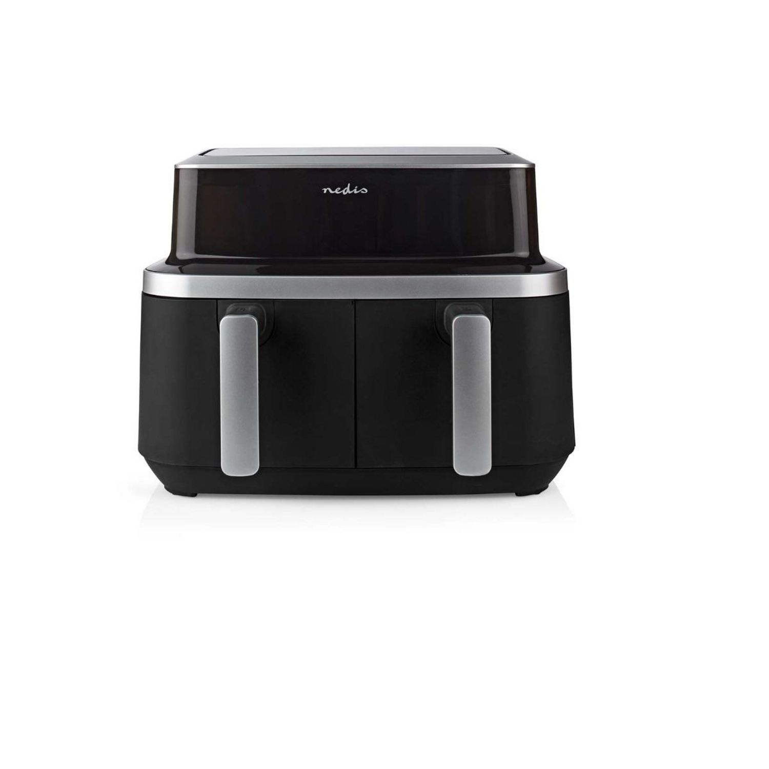 Nedis KAAF320BK Friteuse sans huile double de Nedis KAAF320BK. Cette friteuse à air numérique double Nedis d'une puissance de 2600 watts a une très grande capacité de 8,4 litres, divisée en deux paniers de cuisson séparés de 4,2 litres chacun. Grâce à la technologie qui fait circuler l'air chaud à grande vitesse, vous obtenez un résultat très croustillant avec peu ou pas d'huile, ce qui rend vos aliments plus sains et avec une teneur en graisse plus faible. En outre, vous pouvez également cuire, griller ou rôtir avec cette friteuse à air chaud. Deux paniers permettent la préparation simultanée de deux aliments différents avec des exigences de cuisson différentes. Préparez des frites dans un plateau et des légumes ou de la viande dans l'autre, les deux étant prêts à être servis en même temps. Vous pouvez mélanger et régler les programmes de cuisson avec des temps et des températures différents, qui seront prêts au même moment grâce à la fonction Smart Finish. Ou créez une grande friteuse à air chaud avec la fonction Match Cook, qui fait correspondre les régalges de la zone 2 avec ceux de la zone 1. Spécialement pour les frites, cette friteuse à air chaud Nedis est équipée d'une fonction de rappel de secouage qui vous rappelle de secouer les frites pour obtenir le meilleur résultat de cuisson. La friteuse à air chaud dispose d'un panneau de commande numérique à touches tactiles et d'un écran LED qui facilite son utilisation. Sélectionnez simplement l'un des 10 programmes de cuisson prédéfinis ou réglez manuellement la température et la minuterie pour le plat de votre choix et vous êtes prêt à démarrer. La température et le temps de cuisson restant sont faciles à lire sur l'écran. Pendant la cuisson, les aliments peuvent être surveillés à travers le boîtier transparent situé à l'avant. Une fois la cuisson terminée, un signal sonore retentit et la friteuse à air chaud s'éteint d'elle-même. Pour plus de commodité, la friteuse à air s'arrête automatiquement lorsque vous l'ouvrez. Le nettoyage après utilisation est facile: les jus et les graisses sont collectés sous les grilles des plateaux. La friteuse à air est également dotée d'un revêtement antiadhésif afin que les résidus alimentaires soient facilement éliminés. Les paniers et les grilles peuvent être lavés au lave-vaisselle. Le reste de la friteuse à air peut être nettoyé avec un chiffon humide et un détergent doux après utilisation.