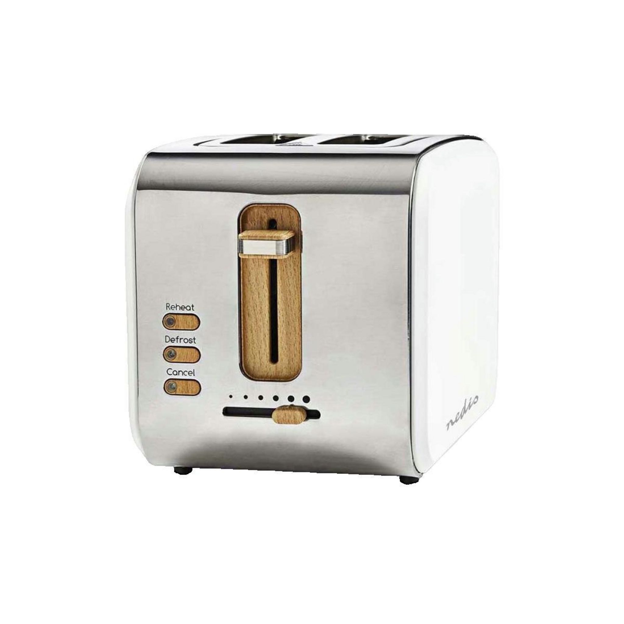 Découvrez le grille-pain Nedis KABT510EWT, un appareil de cuisine performant et élégant. Avec ses fentes extra-larges et sa puissance de 900 W, il convient à tous types de pain, permettant de réchauffer, décongeler ou griller selon vos préférences grâce à ses six niveaux de brunissement. Son design
