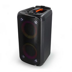 Nedis SPPT2480BK Le haut-parleur trolley de soirée Bluetooth portable Nedis est conçu pour ceux qui aiment faire la fête où qu'ils aillent. Cette enceinte est dotée de nombreuses caractéristiques qui garantissent une expérience inoubliable.La poignée rétractable et les roues, mais aussi la poignée facile à saisir sur le dessus, garantissent une portabilité maximale, vous permettant d'emmener la fête avec vous où que vous soyez. Préparez vous à illuminer la nuit grâce à un anneau lumineux commutable et à un effet stroboscopique hypnotique qui danse au rythme de votre musique, créant ainsi une ambiance qui correspond parfaitement à l'atmosphère de votre soirée. Mais bien sûr, vous pouvez aussi l'utiliser lors de vos activités sportives hebdomadaires pour l'échauffement.Mais il n'y a pas que l'aspect visuel - le haut-parleur trolley de soirée Nedis délivre un son puissant grâce à sa combinaison de 2 subwoofer de 5,25 et de 2 tweeter de 2. Grâce à la fonction MEGA BASS, la musique prend vie lorsque les basses profondes résonnent dans l'air. Réglez votre son avec précision à l'aide des boutons de basses et d'aigus, en adaptant l'audio à vos préférences.Dansez toute la nuit grâce à l'impressionnante autonomie de 5 heures de l'enceinte, alimentée par sa batterie rechargeable intégrée. Diffusez vos morceaux préférés sans fil via Bluetooth 5.0, connectez une clé USB ou branchez là à l'aide d'un câble AUX - à vous de choisir. De plus, grâce à l'entrée microphone filaire et à la fonction d'écho, vous pouvez transformer n'importe quel événement en une véritable fête du karaoké.Le haut-parleur trolley de soirée Nedis ne s'arrête pas là. Surveillez l'état de votre batterie grâce à l'écran d'affichage pratique situé sur le dessus de l'enceinte.Préparez vous à bouger et à rocker avec le haut-parleur trolley de soirée Bluetooth portable Nedis - là où la portabilité rencontre la puissance, et où chaque occasion se transforme en célébration !