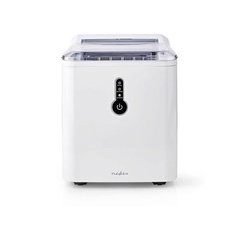 Nedis KAIC100FWT Cette machine à glaçons KAIC100FWT de Nedis reste compacte même avec son réservoir d'eau de 1,6 L qui produit des glaçons pour toutes vos boissons fraîches, n'importe où et n'importe quand. En seulement 8 minutes, vos glaçons sont prêts. La machine peut produire jusqu'à 12 kg de gla