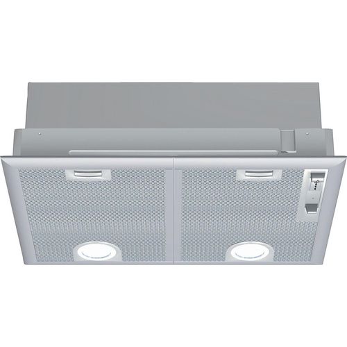Neff D5655X1 Groupe filtrant : cette hotte s'intègre discrètement dans le meuble de cuisine et libère le champs visuel.Eclairage LED : un éclairage puissant, avec une faible consommation énergétique.Position intensive : augmente l'intensité de l'aspiration en cas de fumées denses.Forte puissance d'e