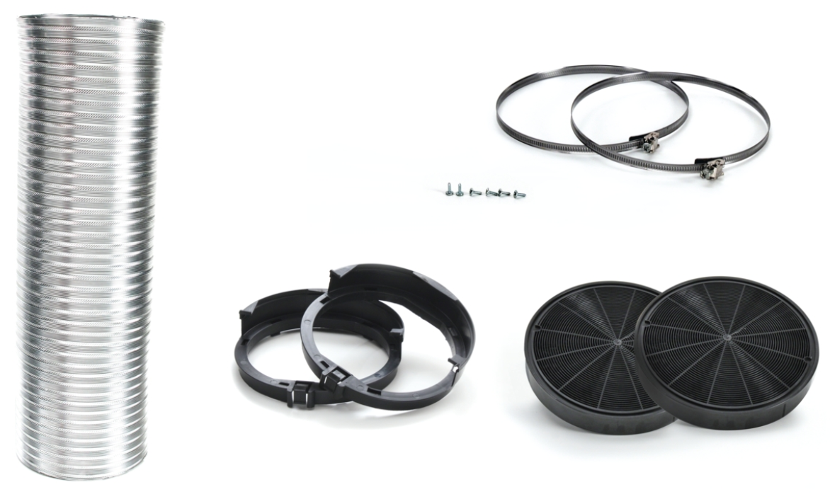 Neff Z5135X3 Kit de recyclage NEFF Z5135X3. Accessoire en option.Pour optimiser le recyclage.Contient : 2 filtres à charbon actif, support de filtre à charbon actif, déflecteur, tuyau flexible ø 150mm et 1500mm de long, 2 colliers de serrage et matériel de montage.