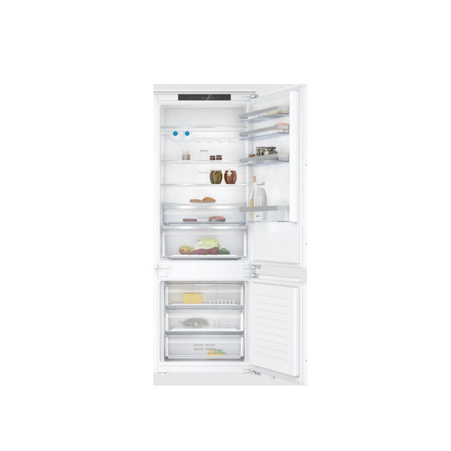 Neff KB7962FE0 Réfrigérateur combiné N 50 KB7962FE0 de Neff.Apportez une touche d'élégance et d'innovation à votre cuisine avec le réfrigérateur combiné intégrable, KB7962FE0, de Neff.Il se distingue par son système de froid ventilé NoFrost, qui empêche la formation de givre et assure une répartitio