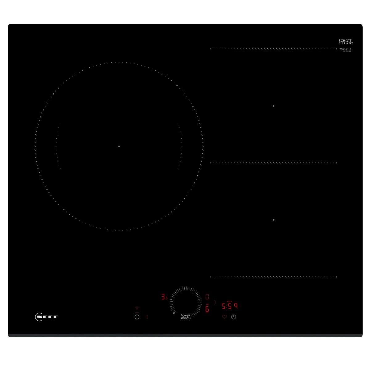 Neff T56FHL1L0 Plaque de cuisson à induction Combi autonome N70 Neff T56FHL1L0 avec commande Twist Touch®. Combi Induction : regroupez deux zones de cuisson circulaires pour chauffer vos plus grands ustensiles de cuisson. Hotte contrôlable via la table de cuisson - commande pratique de la hotte par
