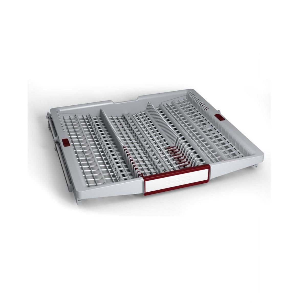 Neff Z786DB04 Tiroir à couverts Neff Z786DB04 pour Flex 3. Transformez votre 3ème niveau de chargement en un tiroir à couverts polyvalent. Les couverts et les petits articles de cuisine peuvent être stockés en toute sécurité et nettoyés et enlevés de manière hygiénique. Eléments abaissables à gauche et à droite pour contenir de petits plats supplémentaires. Picots pliables à l'avant pour l'argenterie avec des poignées plus larges. Points de contact de couleur rouge : voyez immédiatement ce qui peut être ajusté de manière flexible. Espace supplémentaire pour les petits plats (par exemple les tasses à expresso) ou les gros couverts (par exemple les louches à soupe, etc...) au milieu du tiroir à couverts. Système coulissant avec roues à roulement à billes. Pour les lave-vaisselles 60cm de large avec un 3ème niveau de chargement adaptable.