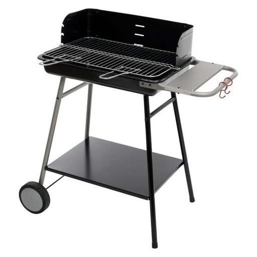 Informations Techniques : Dimensions : L. 86 x l. 52,5 x H. 87 cm Cuve : L. 56 x l. 41 cm Surface de Cuisson : L. 53 x l. 38 cm Matière : Acier Spécificités : Pratique & Utile Barbecue à Charbon de Bois 1 Grille de Cuisson Réglable Nombre de Personnes : 12 Chariot Stable & Robuste Tablette & Poignée